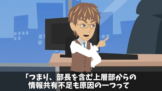 男性社員は今回のトラブルは上層部からの情報共有不足も原因の1つだと言いました。 それを聞いた部長は「お前…今度は上の責任にするつもりか?」と苛立って…。