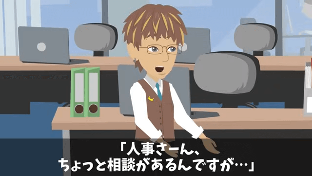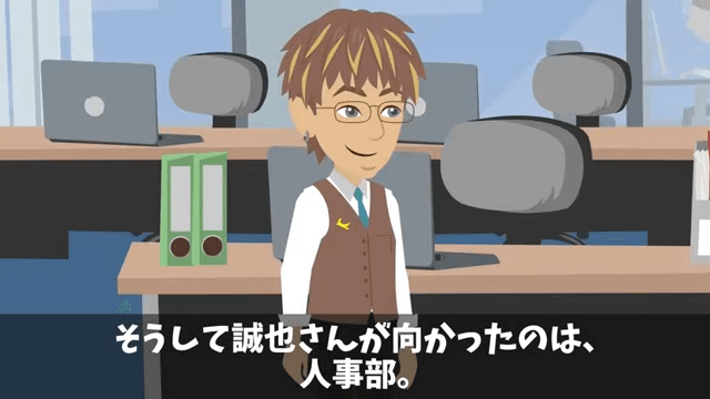 部長はアポが取れ次第、主人公に謝罪に行くと男性社員に伝えました。 すると男性社員はその間に根回しをしようと考え、人事部に向かったのです。