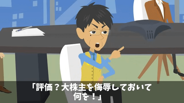 男性社員は会社を守ろうとした自分の行動は評価されるべきだと主張しました。 それを聞いた部長は「評価?大株主を侮辱しておいて何を!」と怒り…。