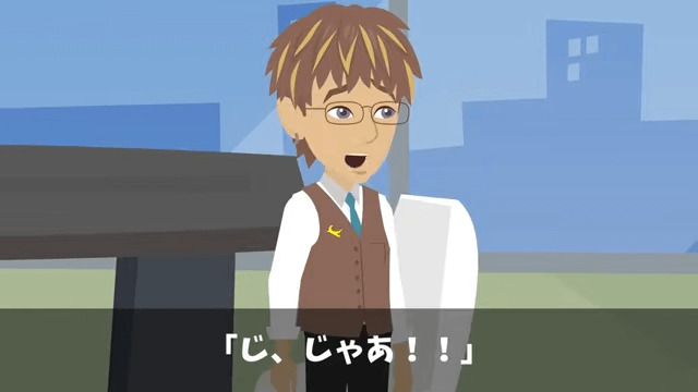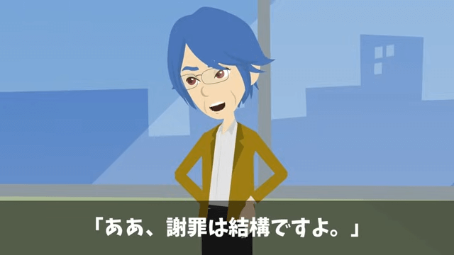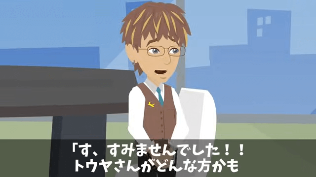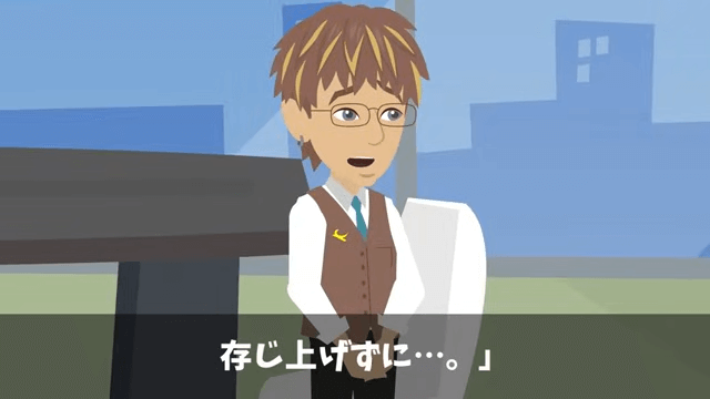 主人公が会議室に現れると、男性社員は慌てて謝罪しました。 すると主人公が「ああ、謝罪は結構ですよ」と言ったため、男性社員の表情は明るくなり…。