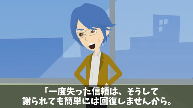 今回は『株主総会で…俺を馬鹿にする社員「大株主が本当なら全株売ってみろよ(笑)」⇒即、売却した結果』を紹介します。 主人公が会議室に現れると、男性社員は慌てて「す、すみませんでした!」と謝罪しました。 それに対し主人公が「ああ、謝罪は結構ですよ」と言うと、男性社員は「じ、じゃあ!」と表情を明るくしたのですが…。