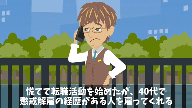 会社をクビになった男性社員は慌てて転職活動を始めました。 しかし40代で懲戒解雇の経歴がある男性社員を雇ってくれる会社はなく…。