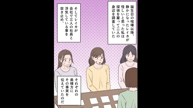 実は女性たちは妹の浮気相手である男性社員たちの妻で、妹が複数人と浮気していたことを知った夫は驚愕し、妹は皆から責められるはめになって…。