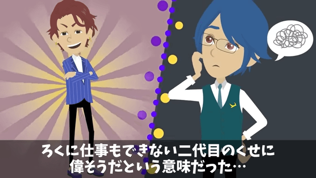 社長は陰でみんなから「2代目」と呼ばれています。 これは親しみからではなく、ろくに仕事もできないのに偉そうだという意味で呼ばれていて…。