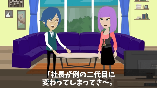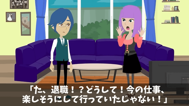 主人公が普段よりも早く帰宅したため、不思議そうにしていた妻。 そこで主人公は、妻に会社を退職してきたことを報告し、社長が代わったことや選択を迫られたことを説明して…。