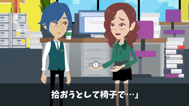 女性社員は、祖母の形見の腕時計を壊してしまったことを主人公に話しました。 すると腕時計を見た主人公が「ちょっと待ってくださいね!」と女性社員に伝えて…。