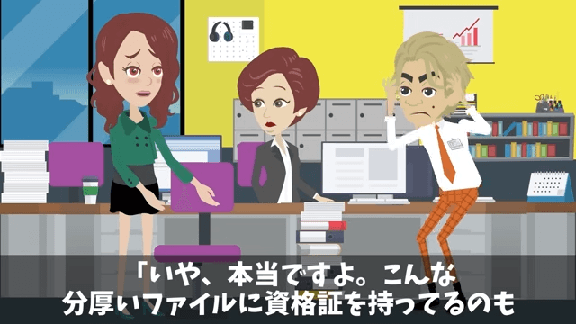 今回は『新社長「貧乏派遣社員は用済み!クビで(笑)」俺「いいのね?」後日⇒社長として再会した結果』を紹介します。 女性社員からいくつ資格を持っているのか聞かれた主人公は「うーん…ざっと100くらいかな?」と答えました。 それを聞いた女性社員は「100個もの資格を取ったんですか!?」と驚いて…。