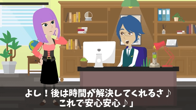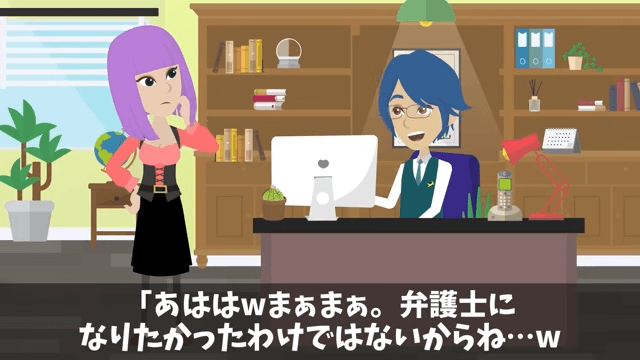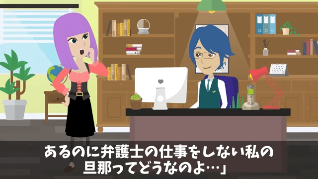 主人公が弁護士資格を持っていることを知った妻は「すごい…妻の私が知らなかった資格があったなんて…」と驚きました。 そして作業を終えた主人公は「よし!あとは時間が解決してくれるさ」と言い…。