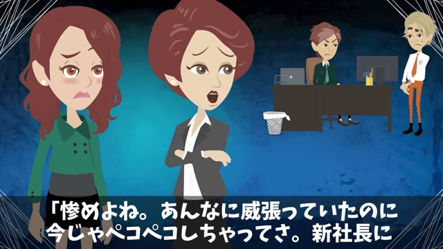 今回は『新社長「貧乏派遣社員は用済み!クビで(笑)」俺「いいのね?」後日⇒社長として再会した結果』を紹介します。 新社長に怒られた部長は「も、申し訳ありません…!」と謝りました。 その様子を見ていた女性社員は「部長、新社長にかなり厳しい目で見られてるよね」と話し…。