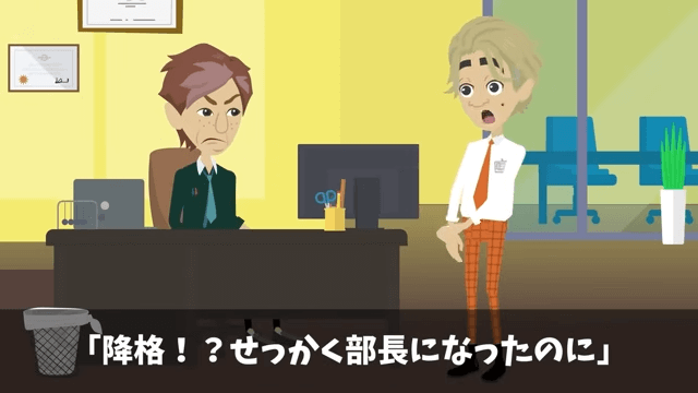 新社長は仕事ができない部長に降格を言い渡しました。 それを聞いた部長が「降格!?せっかく部長になったのに」と驚くと、新社長は「君が部長というのは早かったんじゃないかね!」と言い…。