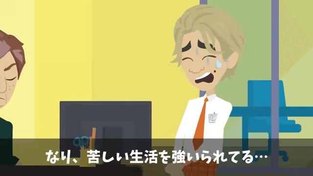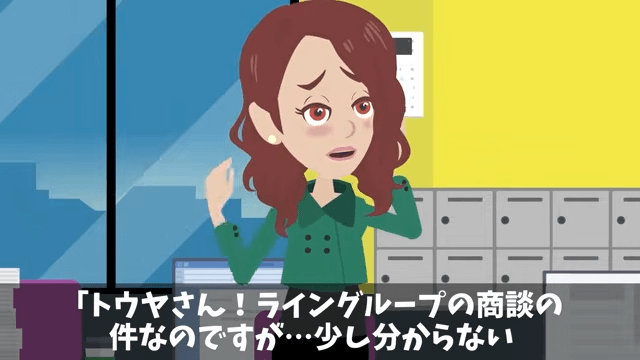 平社員に降格となった部長は、給料が以前の半分になり、苦しい生活を強いられているようです。 一方、女性社員は商談についてわからないことを主人公に相談していて…。