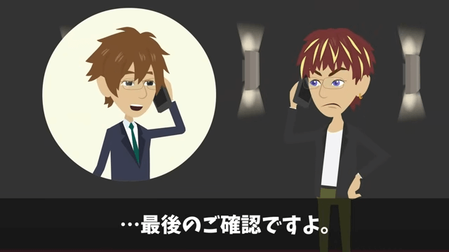 再び主人公から電話がかかってきたため、専務は「一瞬だけ出て、トドメを刺してくるよ」と秘書に言いました。 そして主人公は「専務。…最後のご確認ですよ」と話すのですが…。