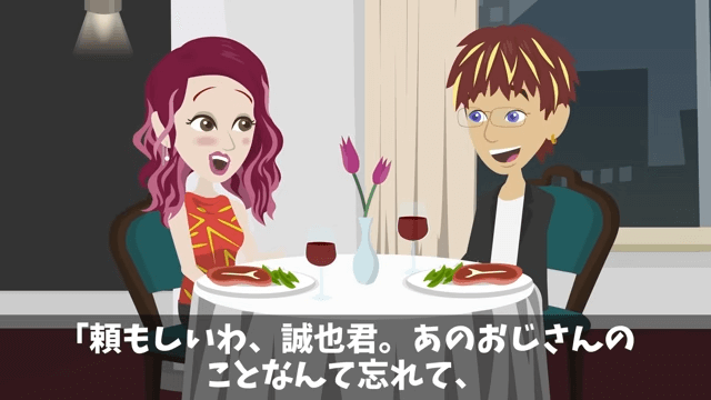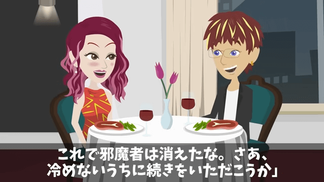 主人公との電話を切った専務は「ハハッ、やっと静かになったよ」と笑います。 そして専務は、秘書とディナーの続きを楽しむことにしました。