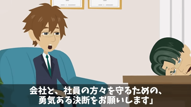 主人公は社長に「今ならまだ、被害者の方々への誠意を見せる時間はあります」と伝えました。 そして主人公が決断を促すと、社長は「…わかっている。わかったよ」と言い…。