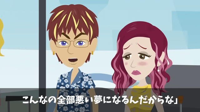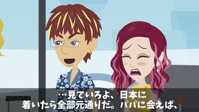 空港の列に並んだ秘書は「最悪の旅行だわ。早く帰りましょう」と嘆きました。 そして専務は「パパに会えばこんなの全部悪い夢になるんだからな」と言いますが…。