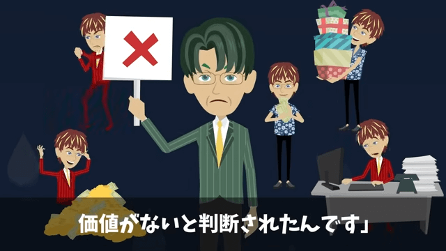 主人公は、社長が専務を警察に突き出す決意をしたのだと話しました。 それに対し専務は「…嘘だ!パパが俺を裏切るわけがない!」と言いますが…。