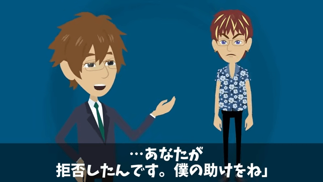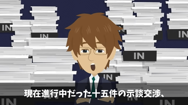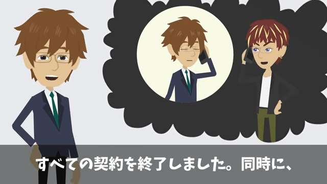 主人公は、専務が「二度と連絡するな」と言った日にすべての契約を終了したことを説明しました。 そして主人公は、専務がすべての助けを拒否したのだと言い…。