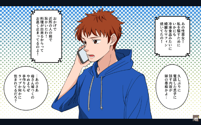 主人公と息子は義弟に誘われ、一緒にお茶をしにいくことに。 すると義弟は義母から主人公の悪口を聞かされ、その嘘を見抜いた上で「母さんが姑になると思うと結婚する気も失せるよ」と言ったことを主人公に話してきて…。