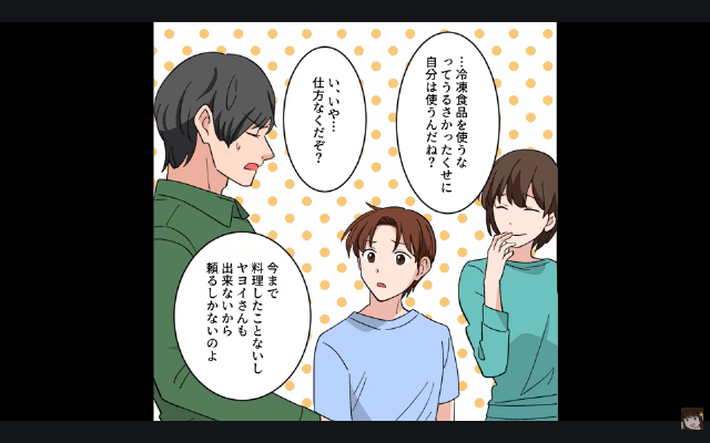 今回は『嘘の”嫁サゲ”をする義母「家事も育児もしない(笑)」⇒お望み通り嫁をやめた結果』を紹介します。 息子と一緒にスーパーへ向かった主人公は、偶然夫と再会しました。 すると夫は、主人公が冷凍食品を買いにきたのだと思い込んでバカにした挙句、息子にまで「お前も不幸だなぁ」「こんな怒りっぽいやつが母親なんて」と言って…。