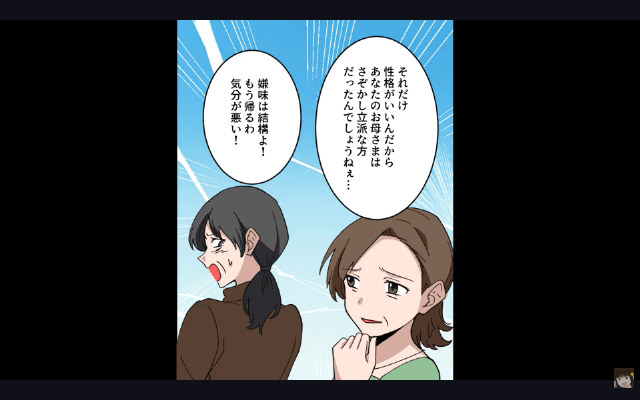 今回は『嘘の”嫁サゲ”をする義母「家事も育児もしない(笑)」⇒お望み通り嫁をやめた結果』を紹介します。 義母は自治会で会った母に「あなた、反省なさいよ?」「あんな風に娘を育てた責任ってものがあるんだから!」と言ってきました。 すると近隣住民は、義母のとげとげしい言い方や、義父が亡くなってから主人公の悪口ばかり言っていることを指摘して…。