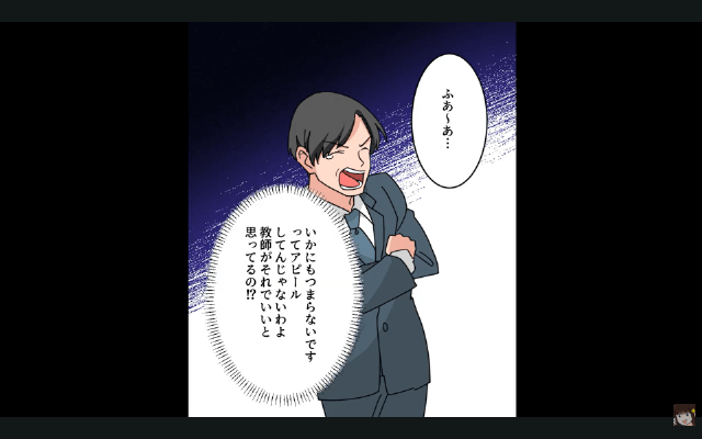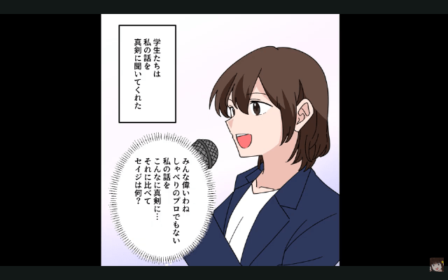主人公は講演を行う場所が夫の勤める高校ということで悩んでいましたが、息子は「これだけすごい仕事してきたんだぞ!って、お父さんにわからせるくらいの気持ちで行けばいいんだよ」と言ってくれました。 そして迎えた講演当日、学生たちは真面目に話を聞いてくれましたが、夫はつまらなそうにあくびをしていて…。