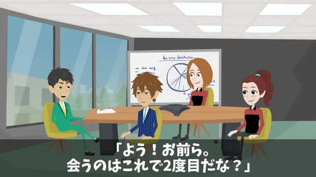 到着した取引先の副社長は「よう!お前ら。会うのはこれで二度目だな?」と言いました。 それに対し主人公は「お疲れさまです。ええ、これで二度目になりますねえ」と答えたのですが…。