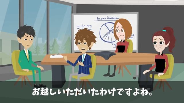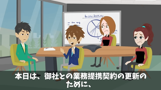 取引先の副社長のせいで雰囲気が悪くなってしまったため、主人公はなんとかその場の空気を変えようとします。 そこで主人公は「本日は、御社との業務提携契約の更新のために、お越しいただいたわけですよね」「さっそく、その手続きのほうに移りましょう」と取引先の副社長に言いました。