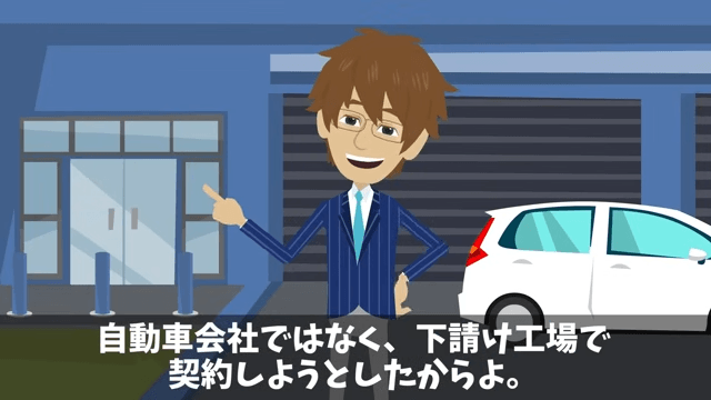 取引先の社長は、今回は下請け工場ではなく自動車会社との契約だったのだと取引先の副社長に改めて伝えました。 そして場所が下請け工場だったのは主人公の都合だと説明し…。