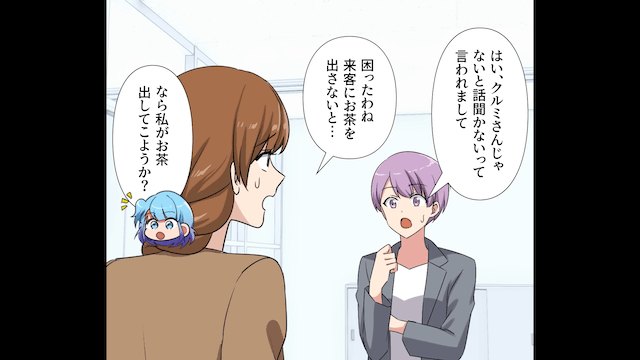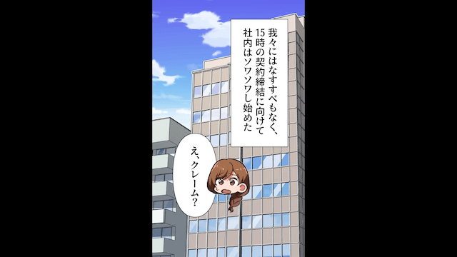 そして契約締結の時間になり、主人公は取引先にお茶出しをすることにしたのですが…。