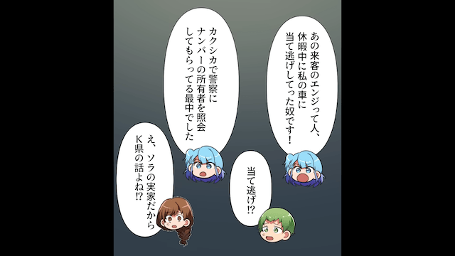 今回は『車を擦るも…男「そこに駐車してるのが悪い(笑)」と逃げたので、取引先として再会した結果』を紹介します。 男性社員が商談している取引先の社長は、主人公の車に当て逃げをした男性でした。 しかし男性は主人公に気づいておらず、驚愕した主人公は部長に報告することにして…。