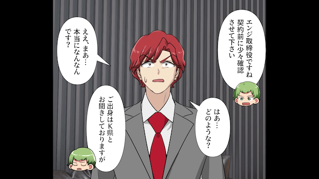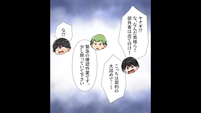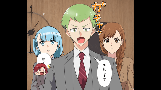 主人公が事情を説明すると、部長は「ありがとう、君のおかげで突破口が開けた」と言いました。 そして契約の大詰めのタイミングで、主人公たちは割って入り、部長が「契約前に少々確認させてください」と男性に話しかけたのです。