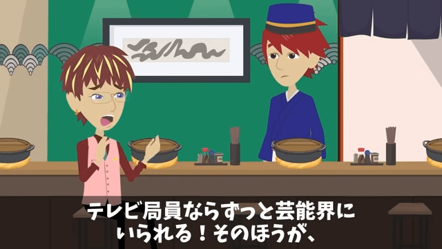 同級生はアイドルよりもテレビ局員のほうがずっと芸能界にいられると言います。 そして、テレビ局員のほうが美人アナウンサーと結婚できるチャンスが多いと話しました。