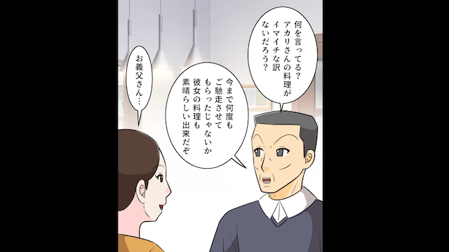 マザコンと化した夫は、義母に甘えるだけでなく、義母と主人公の料理を比べて主人公を貶すようになりました。 さらに義母も夫を甘やかすため、義父だけが主人公を庇ってくれて…。