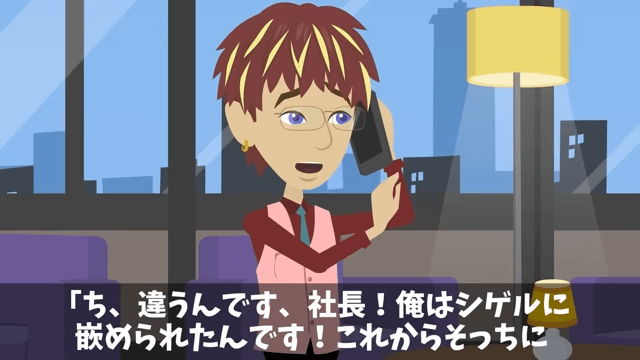 社長は、主人公に嫉妬してこのようなひどいことをしたのかと同級生を問い詰めました。 すると同級生は慌てて「ち、違うんです、社長!俺は彼に嵌められたんです!」と言ったのですが…。