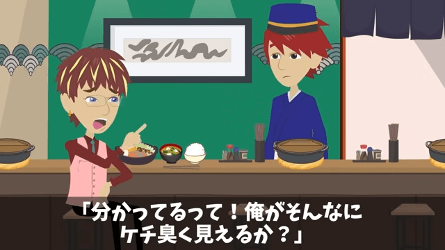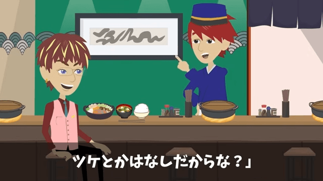 同級生が追加の注文を始めたため、主人公は「どうしたんだ?急に態度を変えて…」と不思議に思いました。 そして主人公は「…言っておくけど、俺の奢りとか、ツケとかはなしだからな?」と同級生に伝えたのです。