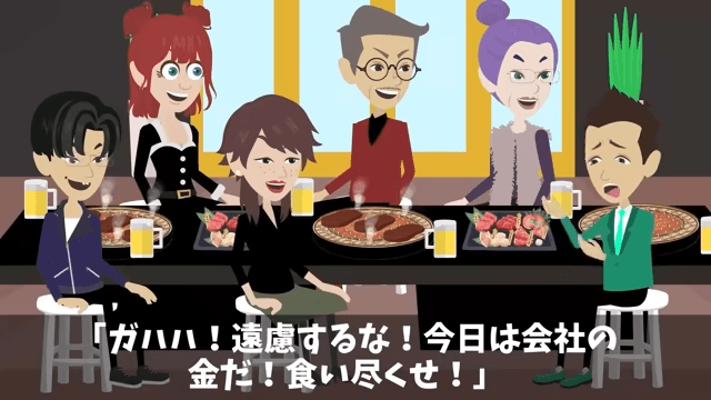 今回は『新年会に勝手に家族10人連れてきた上司の末路』を紹介します。 この日、係長は自分の家族に「遠慮するな!今日は会社の金だ!食い尽くせ!」と声をかけました。 すると係長の妻が「さすがあなた!このお肉、金箔乗っているじゃない!」と喜んで…。