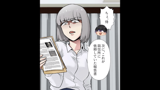 覚悟を決めた義姉は義兄に話しかけ、モラハラの証拠があると伝えました。 すると義兄が「お前そんなキャラじゃなかっただろ!」と激怒したため、義姉は「私だって我慢の限界はあるの」と言い、興信所からの報告書を取り出したのです。