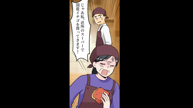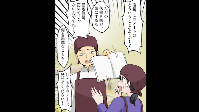 店長から経費削減のために外国産のイチゴを使うよう強要された男性スタッフは、それを拒否しました。 そのとき、店長が落としたノートを確認した主人公は、店長が今までも産地偽装をしていたことに気づき、店長を問い詰めたのです。