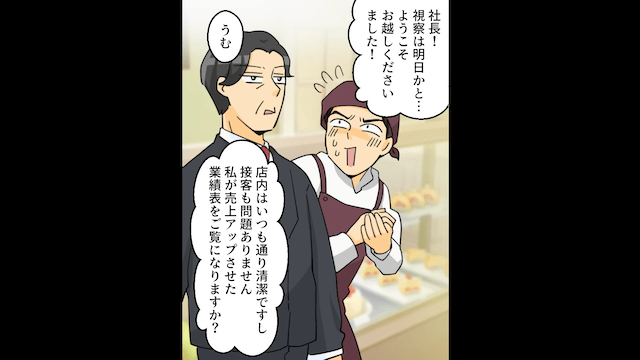 主人公や男性スタッフがなにを言っても、店長は反省しませんでした。 しかしそこに社長がやってきたため、店長の態度は一変したのです。