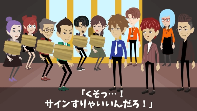 今回は『新年会に勝手に家族10人連れてきた上司の末路』を紹介します。 主人公は係長とその家族に「全員、この借用書にサインしてもらう。連帯保証人としてね」と告げました。 すると係長の妻は「そ、そんな…離婚よ!」と係長に言い、係長の両親も係長を勘当して…。