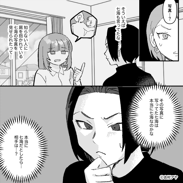 浮気をしていた夫と隣人は、計画がうまく進んだことを喜び合い、主人公からの慰謝料で一緒に暮らそうと浮かれていました。 2人の言動を聞いた親友は、浮気の証拠写真が本物なのかを気にします。