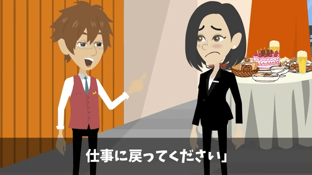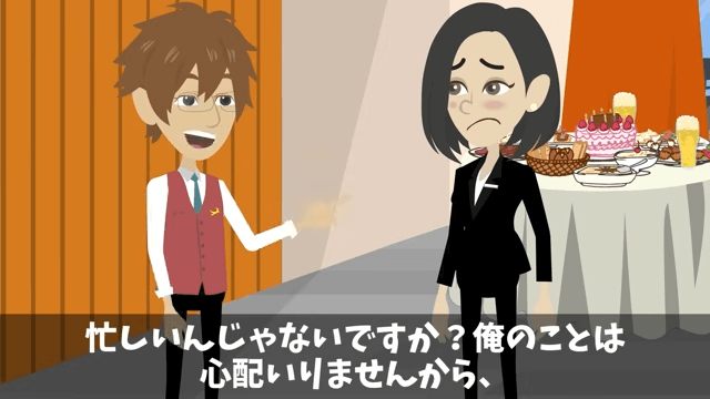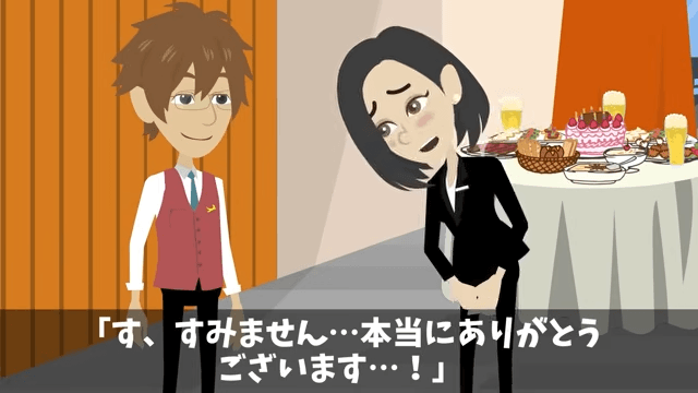 主人公は、ただの水だからクリーニング代はいらないと従業員に伝えました。 そして「俺のことは心配いりませんから、仕事に戻ってください」と言ったのです。
