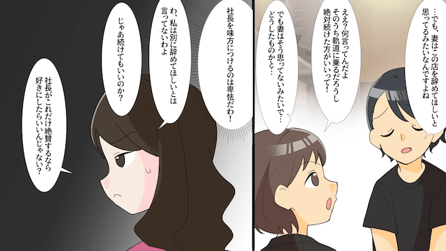 すると社長が主人公の味方をしたため、妻は「好きにしたらいいんじゃない?」と言うしかなくなり…。