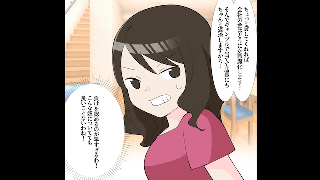 秘書の信用を失った社長は青ざめ、主人公にお金を貸してほしいと土下座してきましたが…。