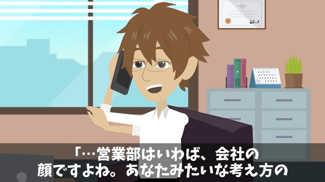 主人公は男性社員に「あなたの役職は部長だそうですね」と確認しました。 それに対し男性社員は「えっ?あ、はい!そうですよ!営業部の部長です!」と答えて…。
