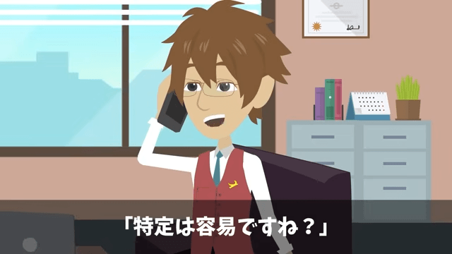 主人公は男性社員の上司に、書き込みの犯人について「特定は容易ですね?」を尋ねました。 すると男性社員の上司はうなずき「ちょうど、法的措置を取ろうと思っていたところでした」と答えて…。