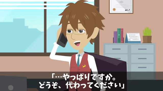 電話をかけてきた男性社員の上司は、例の犯人が主人公と話したがっていると言いました。 そこで主人公が「…やっぱりですか。どうぞ、代わってください」と伝えると…。