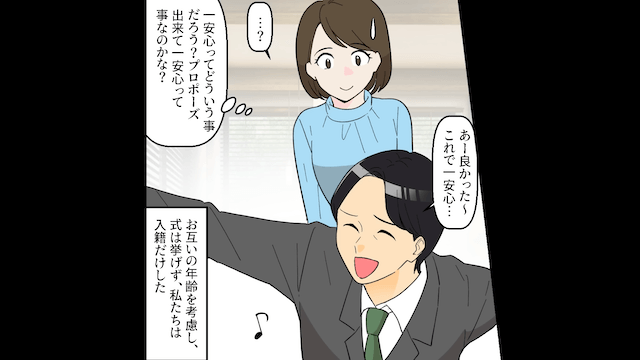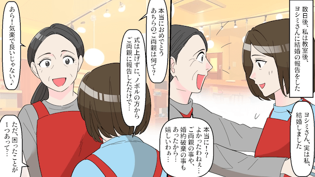 主人公が落ち込みながら教室を出ると男性が待っていて、突然告白をされました。 そしてデートを重ねて半年後、男性は主人公の夫となったのです。
