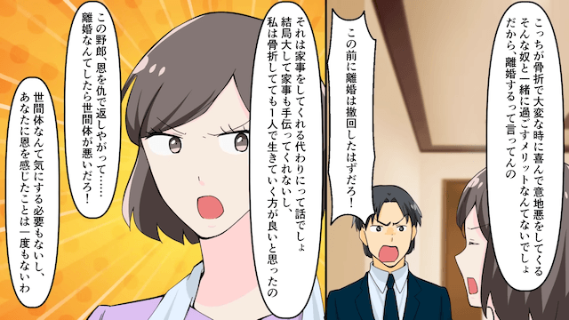 今回は『夫「ママなら完璧に家事出来るのにな~」嫁「じゃあ離婚で!」⇒お望み通り妻をやめた結果』を紹介します。 夫は骨折した主人公に「お前は使えない」と言い、義母に家事をお願いすることにしました。 すると翌日、義母が家に来ることになり…。