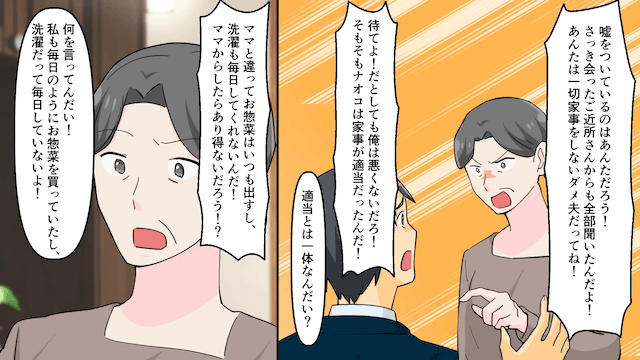 今回は『夫「ママなら完璧に家事出来るのにな~」嫁「じゃあ離婚で!」⇒お望み通り妻をやめた結果』を紹介します。 自分の都合のいいように嘘をつき、義母に泣きついた夫。 すると義母は「最近はいろいろと大変だったようね〜」と言い…。